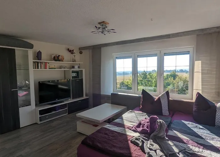 Bij Landhaus "Kuehler Morgen", Komfortable Fewo Mit Aussicht kunnen gasten gebruik maken van self-catering voorzieningen, waaronder een ingerichte keuken, en genieten van hun maaltijden in een eetgedeelte. Erfurt Weimar luchthaven is op 105 km van dit appartement. Als u van sport houdt, zullen badminton die beschikbaar zijn bij dit appartement u zeker bevallen. Een terras kijkt uit over de berg en zorgt voor een aangenaam verblijf.